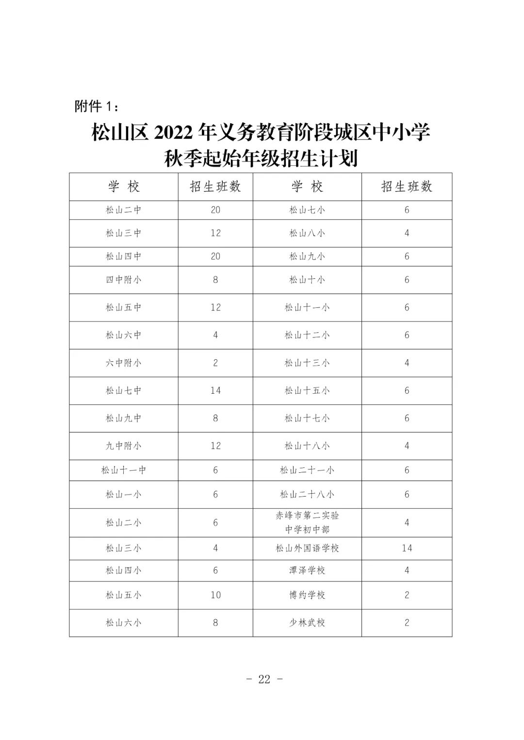 1.《松山区 2022 年义务教育阶段城区中小学秋季起始年级招生计划》;