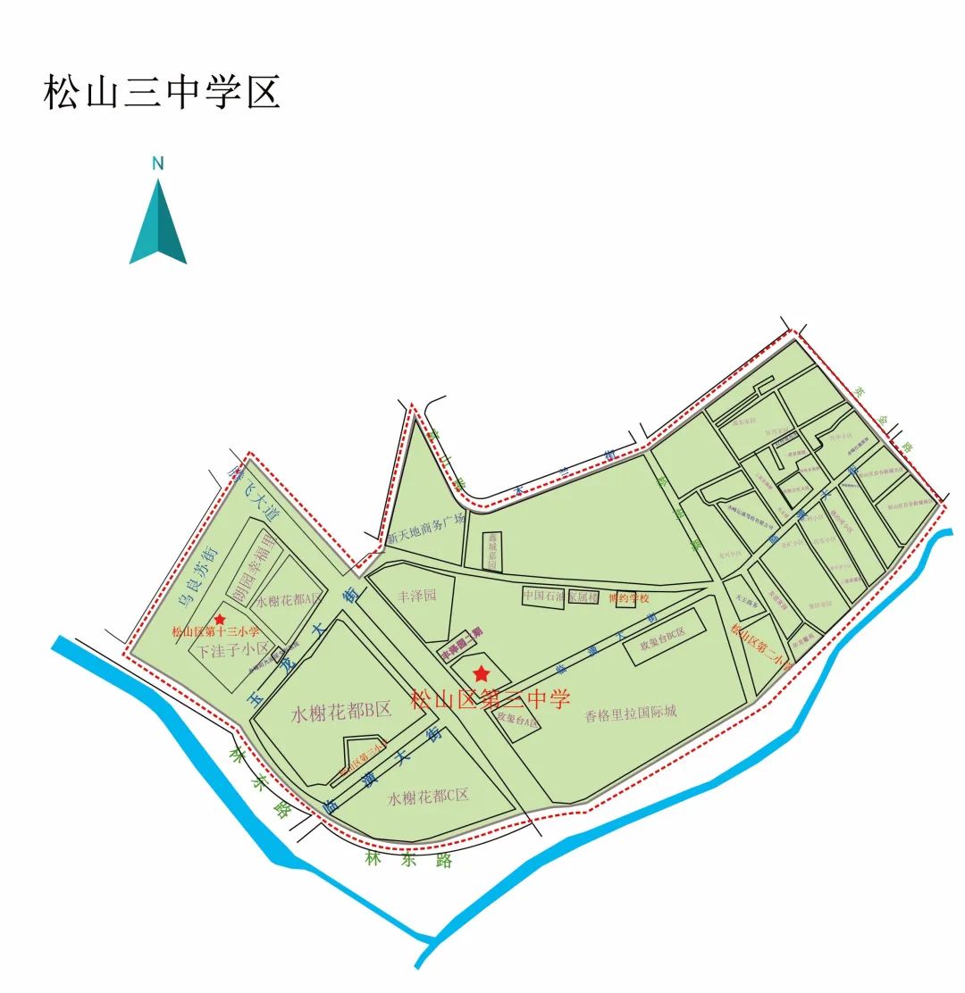 2.松山三中招生区域:(1)铁路线以东,从木兰街西段经富山路到玉龙大街中段以南,英金路南段以西,锡泊河以北。(2)半支箭河以东,乌良苏街以南,铁路线以西,锡泊河以北。