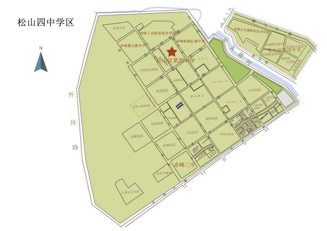 3.松山四中招生区域:(1)西外环路以东,半支箭河以南和以西,玉龙大街以北。(2)半支箭河以东,友谊大街以南,腾飞大道以西,乌良苏街以北。