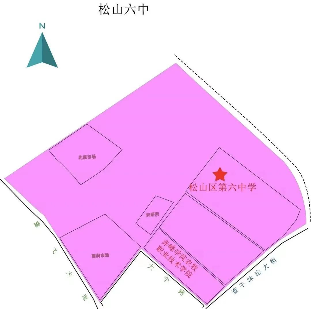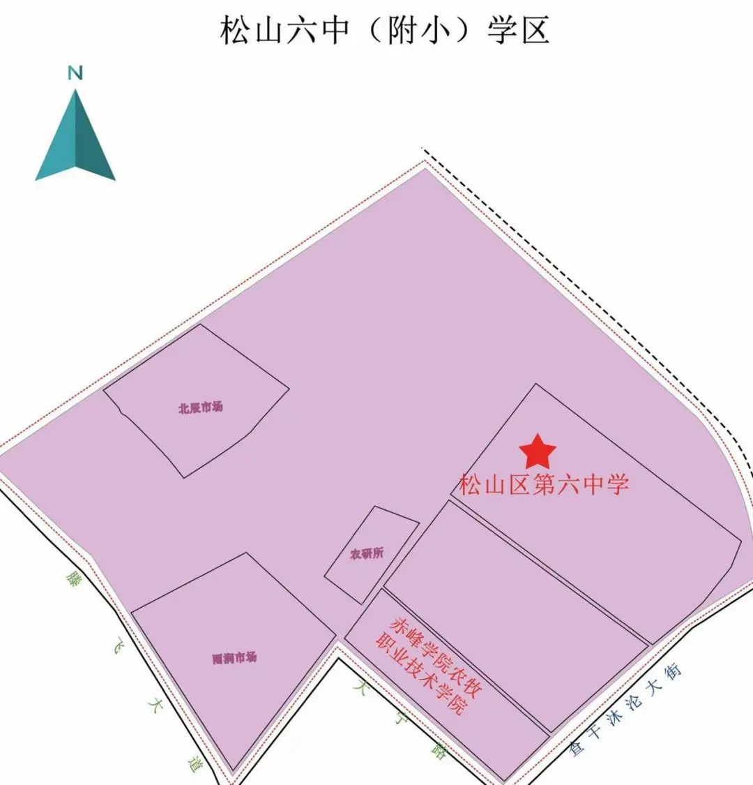 5.松山六中招生区域:(1)农研地区。(2)穆家营子镇北洼子村、官仓沟村。(3)松山区物流园区(查干沐沦大街以北)。