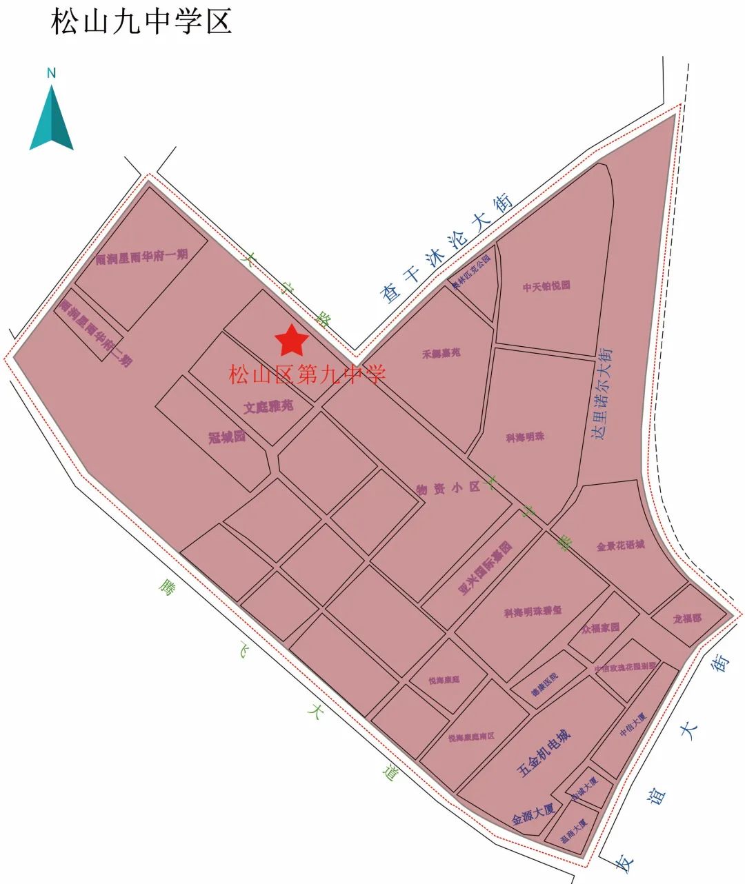 7.松山九中招生区域:(1)腾飞大道以东,查干沐沦大街以南,铁路线以西,友谊大街以北。(2)文庭雅苑小区、冠城园小区。(3)雨润星雨华府小区、五甲万京小区。