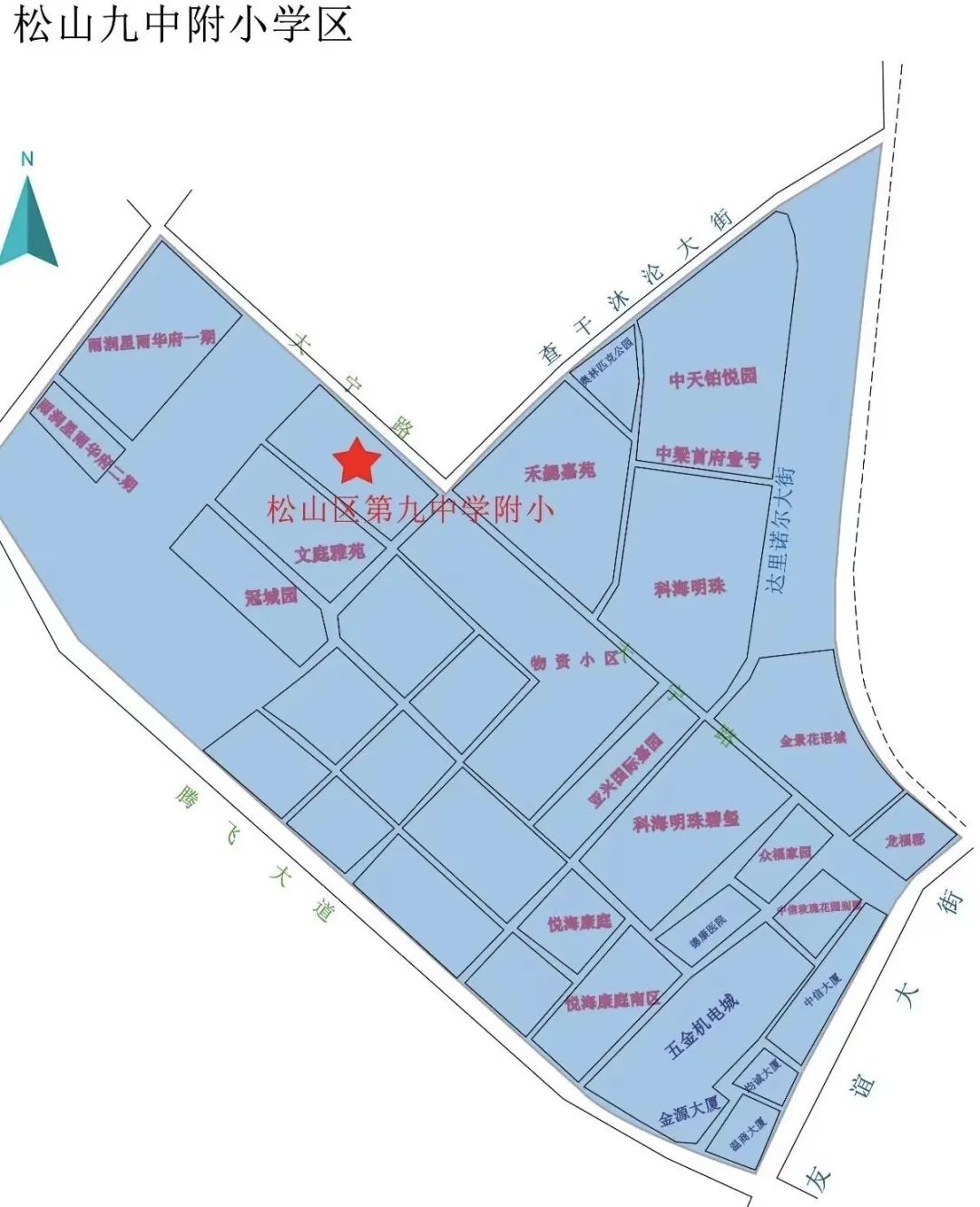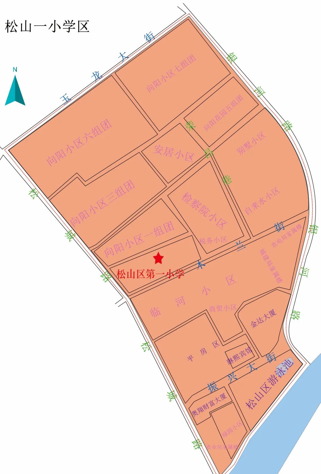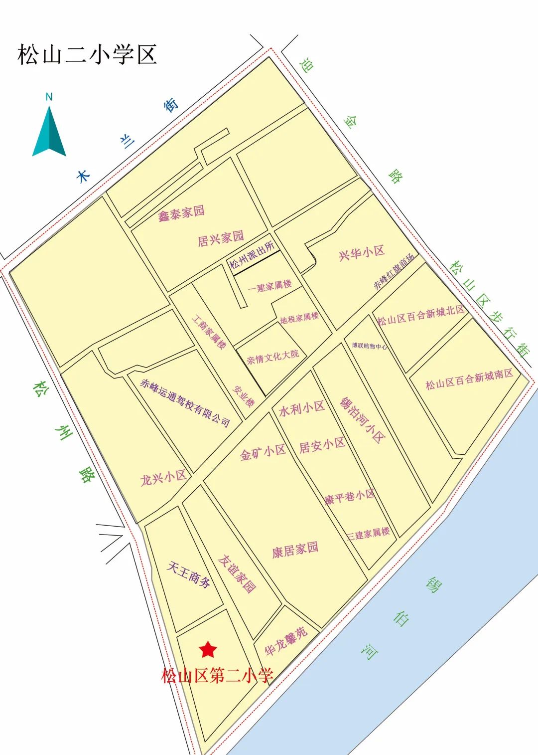 2.松山二小招生区域:松州路中段以东,木兰街中段以南,英金路南段至松山区商业步行街以西,锡泊河以北。