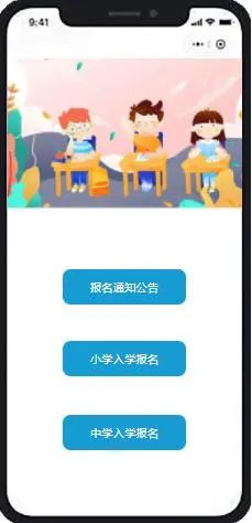 3.点击“小学入学报名”按钮,进入报名界面。报名成功后可以通过点击“招生报名通知公告”查询学生录取情况。