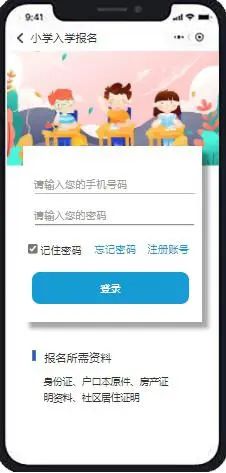 报名主体注册:身份证号作为唯一标识,注册时设定密码(适龄儿童少年身份证信息作为唯一标识)