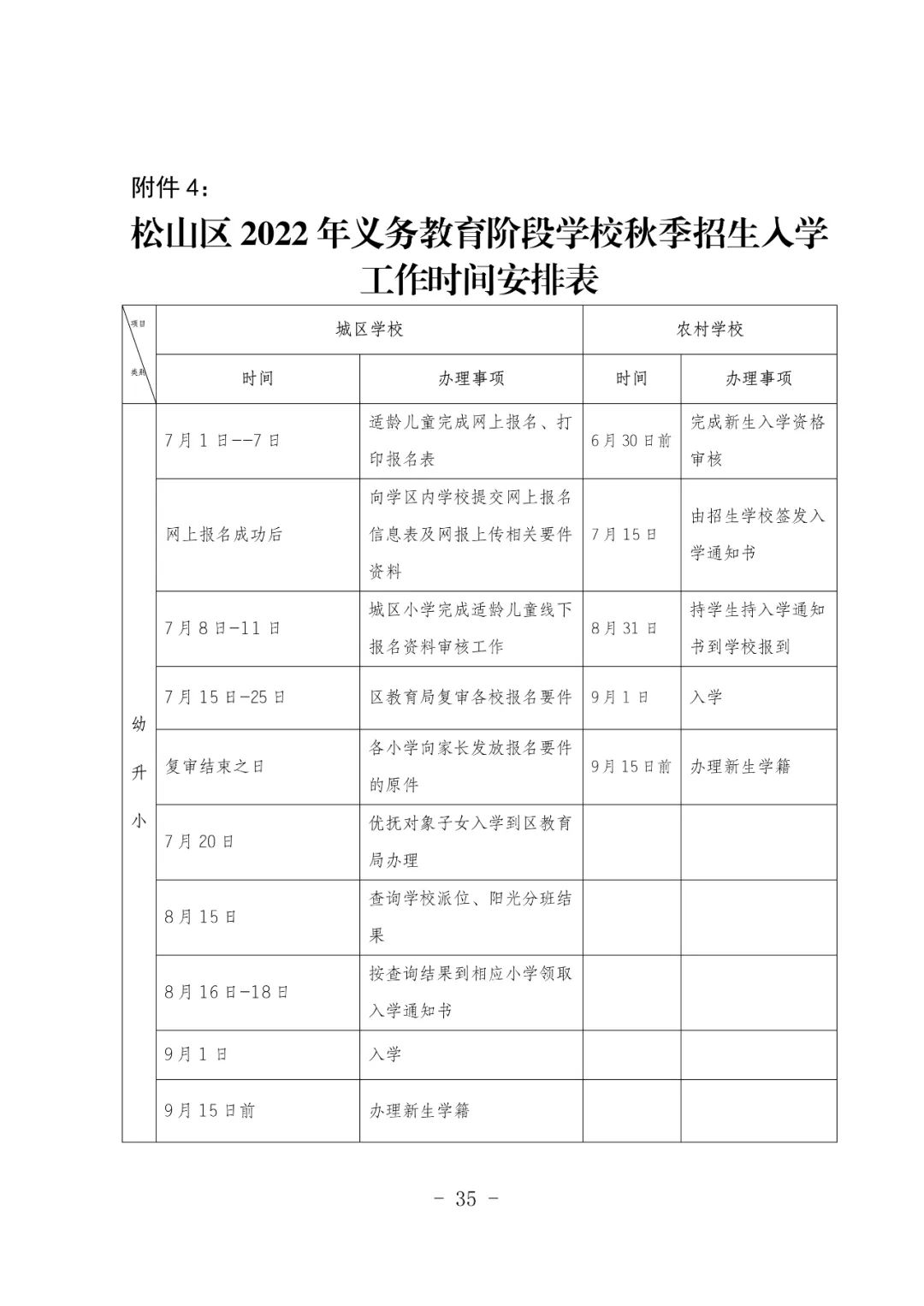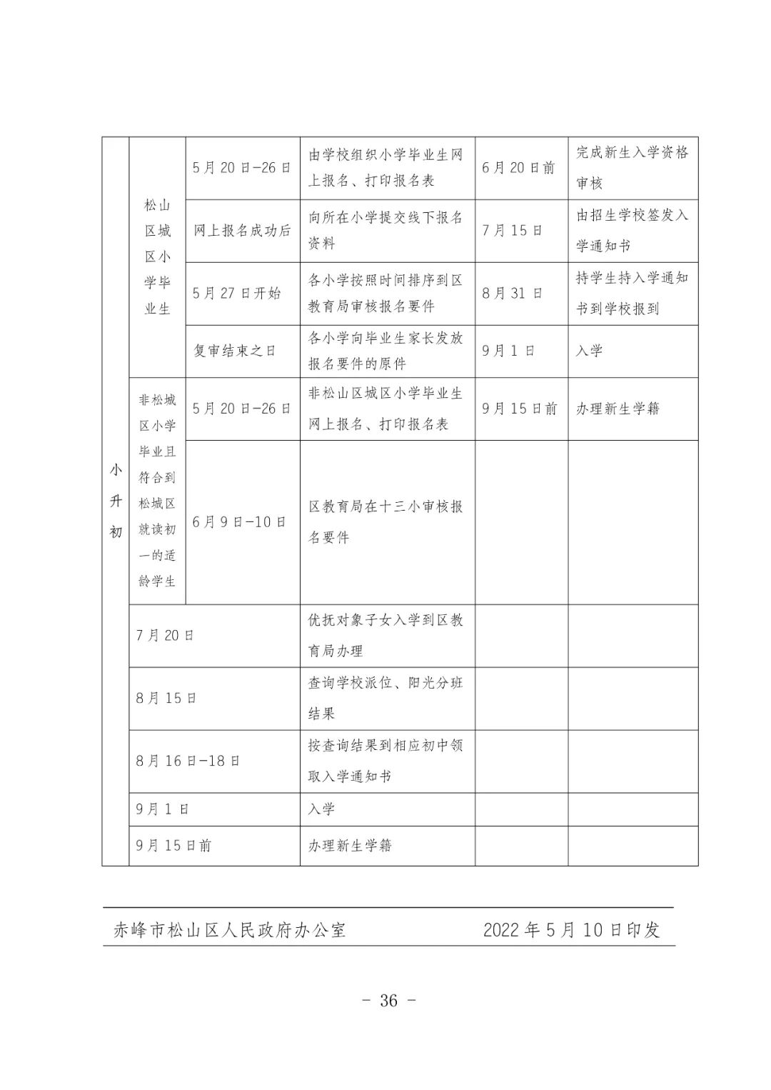 4.《松山区 2022 年义务教育阶段学校秋季招生入学工作时间安排表》。