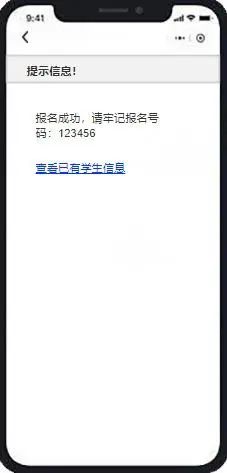 4.显示下图证明报名成功,请牢记报名号码,报名审核需要提供此号码。