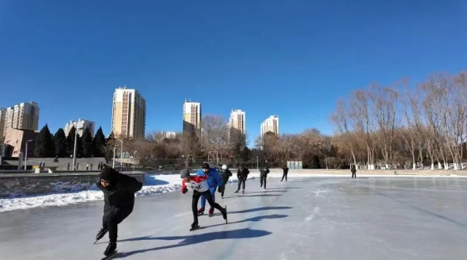 我家就住这附近,以前来公园总看见这儿坑坑洼洼漏水。市民尹国藩说:现在做了防水处理,夏天水清树绿,是人们休闲锻炼身体的好地方,入冬后,这个防水做得好,形成自然的冰场,为滑冰爱好者提供了免费的滑冰场地,是个休闲的好地方,非常不错。